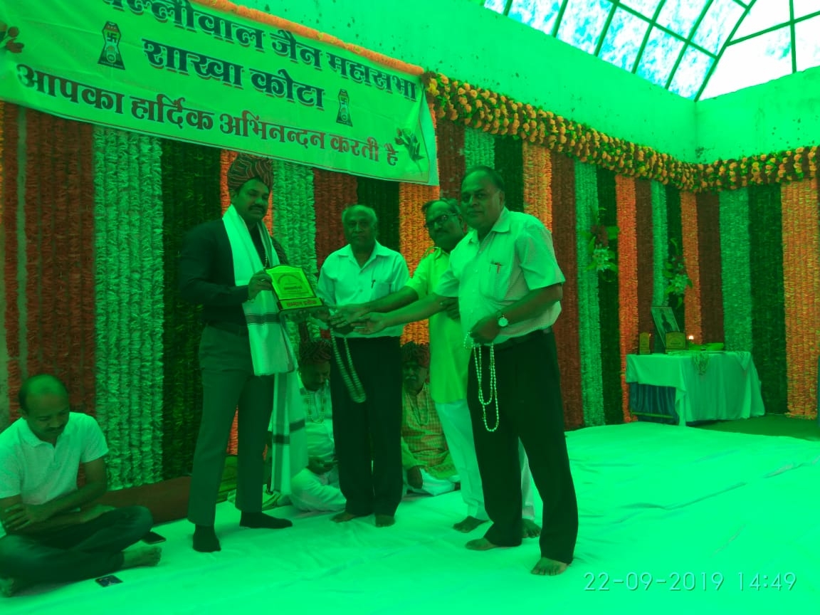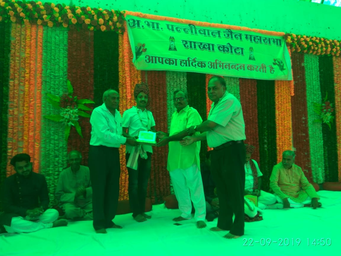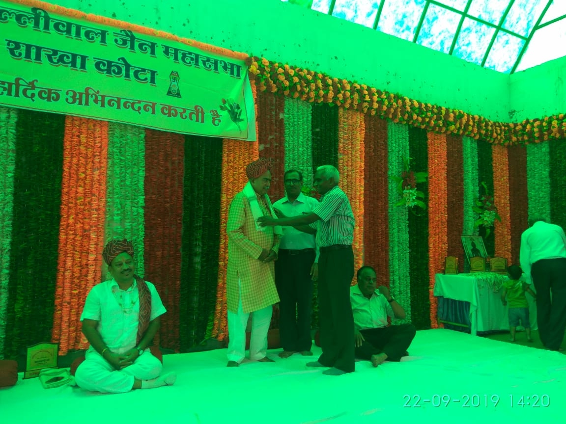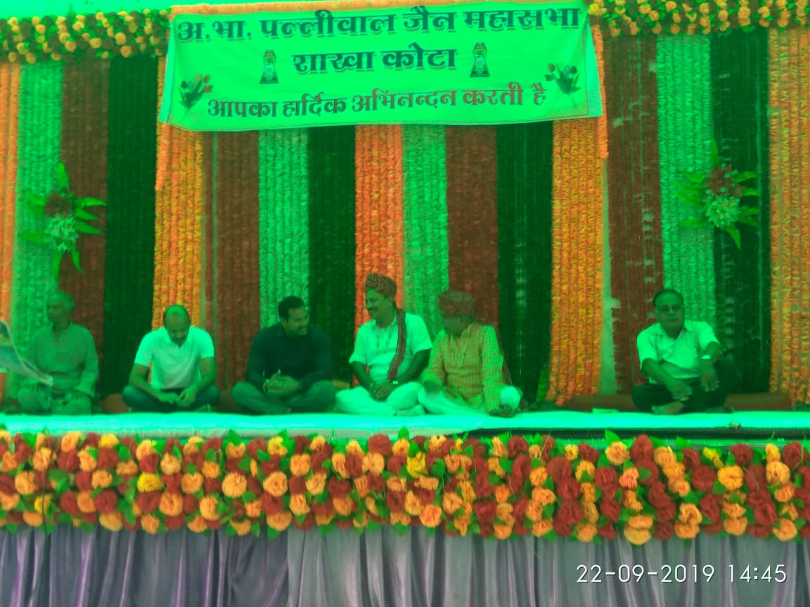 अखिल भारतीय पल्लीवाल जैन महासभा शाखा कोटा द्वारा क्षमा वाणी पर्व 22.09.19 रविवार को पल्लीवाल भवन कोटा में मनाया गया इस कार्यक्रम में महासभा के महामंत्री श्री राजीव रतन जैन द्वारा झंडा रोहण किया गया दीप प्रज्वलन श्री श्याम लाल जी जैन कोटा एवं महामंत्री राजीव रतन जी संघठन मंत्री श्री महेंद्र जैन शाखा अध्यक्ष प्रवीण जैन शाखा मंत्री श्री पदम चंद जैन ने किया साथ ही दक्षिण कोटा के विधायक श्री संदीप शर्मा, अतरिक्त अधिक्क्षक श्री पारस जैन कोटा, अतरिक्त अधिक्क्षक श्री प्रवीण जैन कोटा का भी सम्मान किया गया भजन प्रस्तुति श्री सौरभ शास्त्री द्वारा किये गए साथ ही पर्युषण पर्व पर व्रत रखने वालो का सम्मान किया गया एवं विद्यार्थी सम्मान भी किया गया अंत में सह भोज के साथ कार्यक्रम समाप्त किया गया